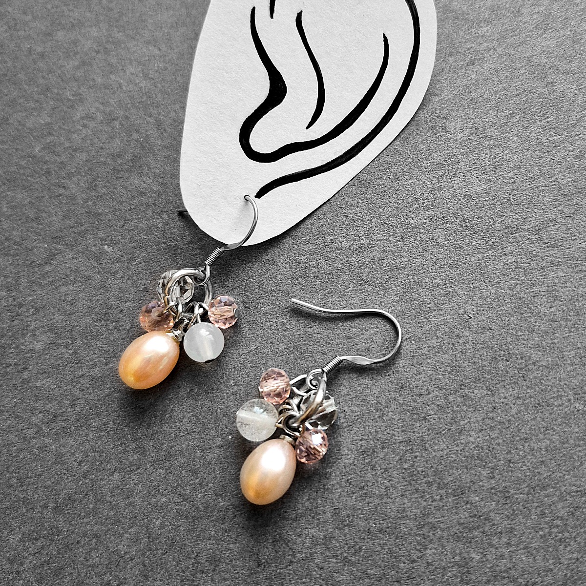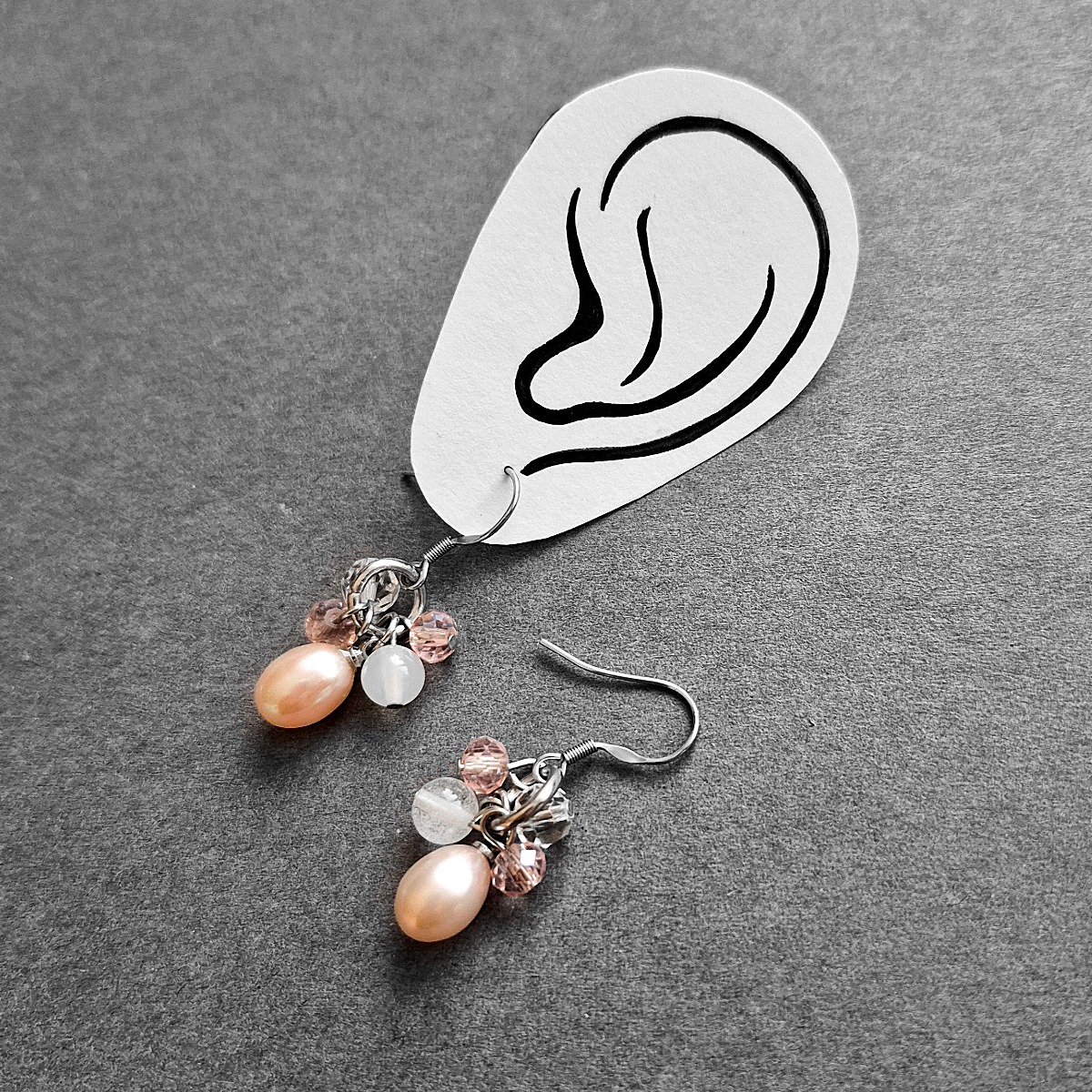 Außergewöhnlicher Ohrschmuck aus Edelstahl mit Süßwasserperlen, Achat- und Glasperlen.